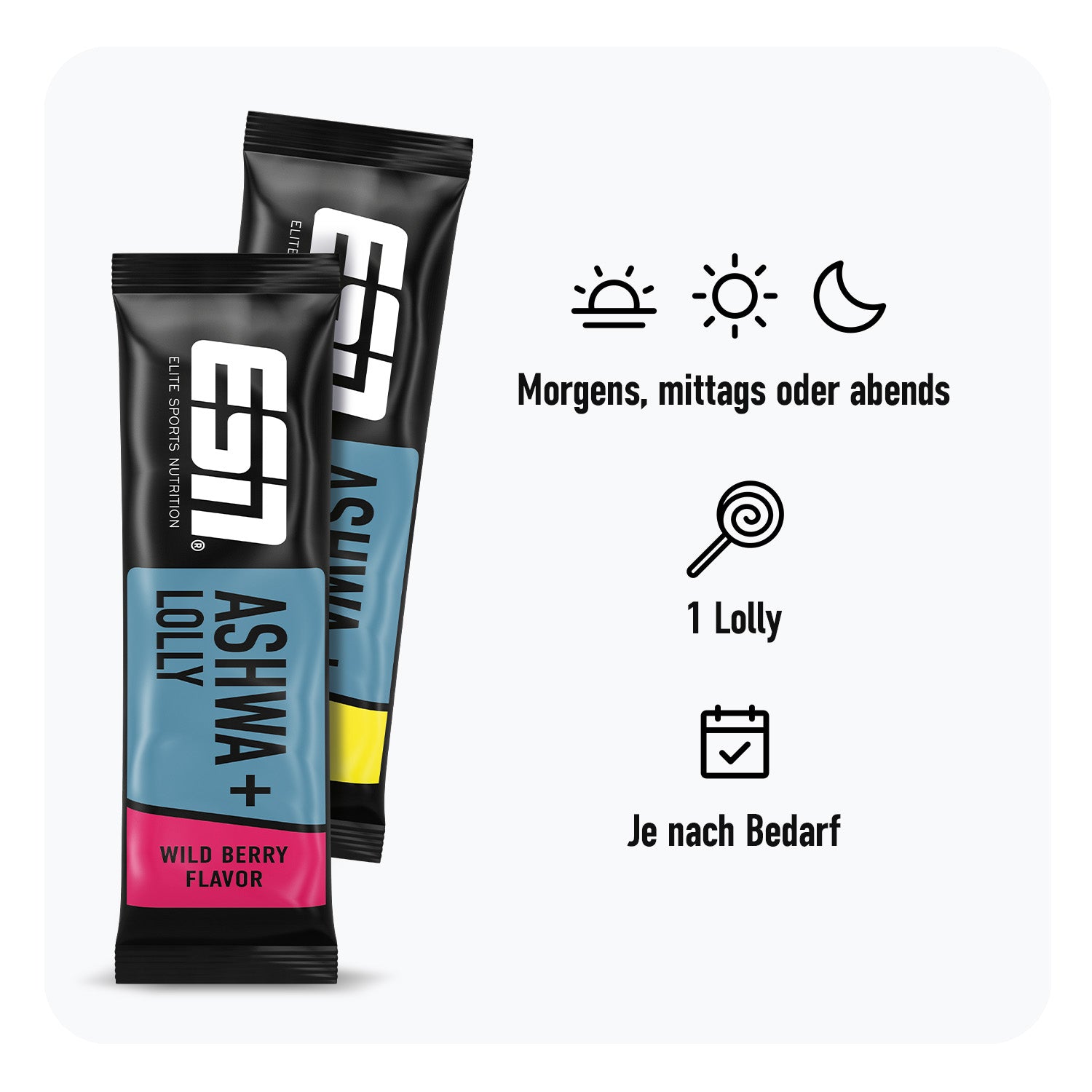 Intensive Workouts, lange Arbeitstage und ein stressiger Alltag können schnell zu mentaler und körperlicher Erschöpfung führen. Das Problem: Stresshormone wie Cortisol steigen, die Energie sinkt, der Schlaf wird schlechter und vieles mehr. Genau hier kommt unser Ashwa+ Lolly ins Spiel: Mit wertvoller Pflanzen-Power von Ashwagandha KSM-66® und einem Komplex aus den Anti-Stress- & -Müdigkeits-Vitaminen erhältst du einfachen und effektiven Support – und das in fruchtig leckere Lolly-Form.12 Ob als Push für mentalen Fokus, mehr Energie und Gelassenheit am Morgen, als Support bei der Regeneration nach dem Training oder für mehr innere Ruhe und erholsamen Schlaf am Abend – dieser Lolly unterstützt dich, wann immer du es brauchst. 12 Und das Beste: Die Wirkstoffe werden gleichmäßig freigesetzt, was die Aufnahme im Körper verbessert, und eine sanfte, kontinuierliche Wirkung gewährleistet. Time to relax!