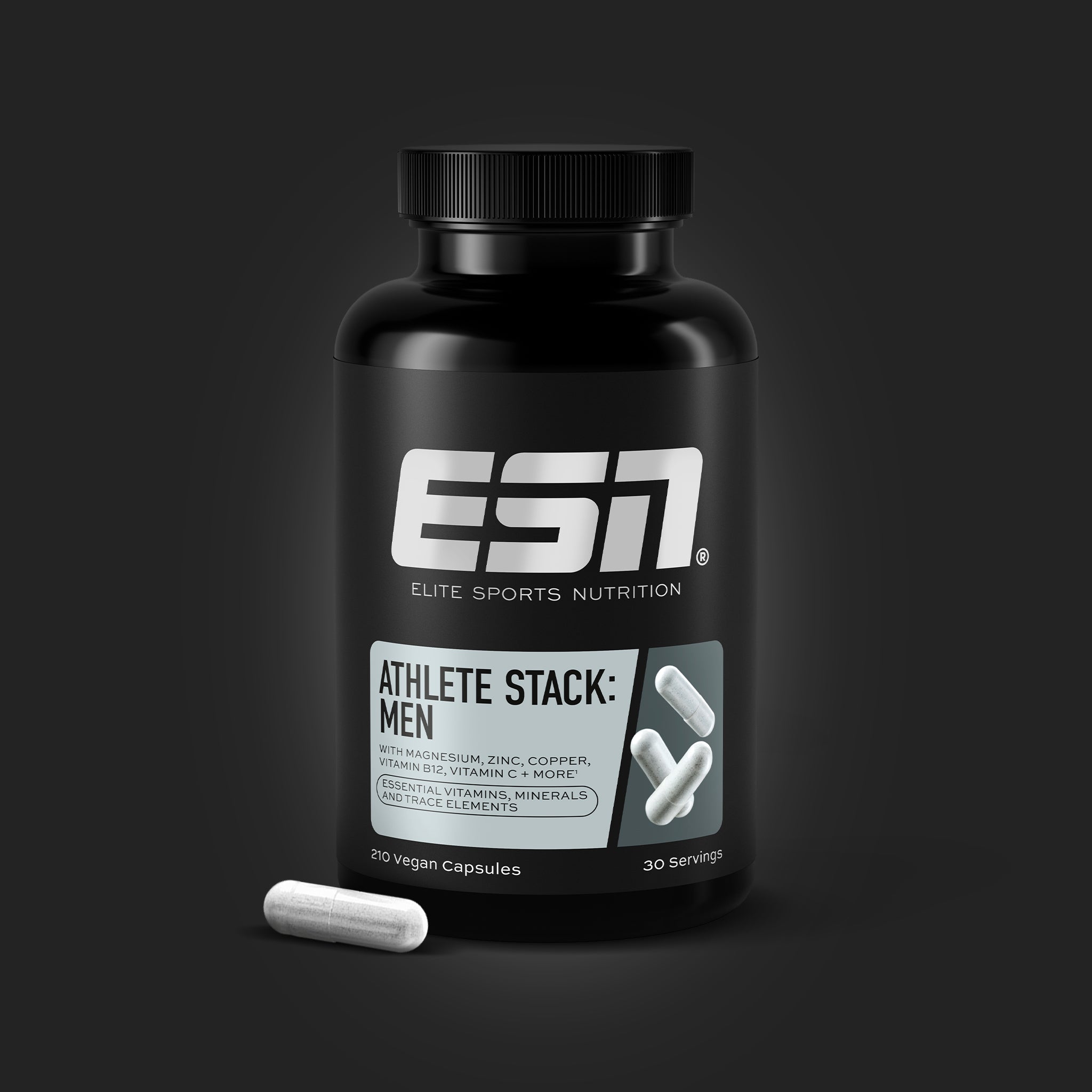 Ganz gleich, was wir tun – mit einem gesunden und leistungsfähigen Körper gehen uns die Dinge deutlich leichter von der Hand. Hierfür ist u. a. eine ausgewogene Ernährung die Grundlage. Sie setzt jedoch ein umfangreiches Wissen, einige Planung und Zeit voraus. Deinen durch Sport möglicherweise erhöhten Bedarf an Vitaminen, Mineralien und Spurenelementen kannst du auch einfacher decken: Durch die Ergänzung deiner Ernährung, um ein auf den individuellen Bedarf eines Athletes abgestimmtes Supplement – unseren Athlete Stack:Men. Mit sieben Kapseln pro Tag deines Health-Allrounders deckst du deinen Bedarf. Die Mitnahme von unzähligen verschiedenen Dosen hat somit endlich ein Ende!
