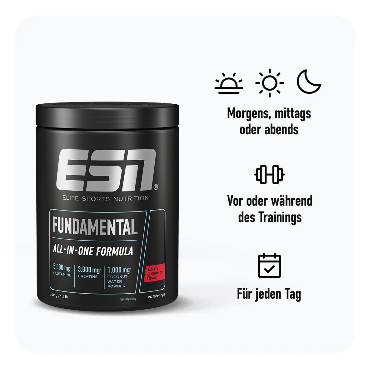 Ob im Gym, auf dem Spielfeld, der Laufstrecke oder im Oktagon: Du gibst alles. Deine Ziele sind hoch, deine Ansprüche klar – du willst jeden Tag das Beste aus deiner Leistung herausholen. Das Mindset hast du, jetzt brauchst du nur noch die Nährstoffe, die dich jeden Tag bei deinen Zielen optimal unterstützen. Viele Athleten haben eine komplizierte Supplement-Routine mit vielen einzelnen Produkten, die viel Zeit kostet und nicht immer den gewünschten Effekt bringt. Fundamental ist die Antwort auf genau dieses Problem: Unser All-in-One-Performance-Support vereint Kreatin, Beta-Alanin, Citrullin, Elektrolyte, Aminosäuren, Vitamin C und mehr in einer einzigen, optimal abgestimmten Formulierung. Wissenschaftlich dosiert, einfach in der Anwendung, erfrischend lecker und entwickelt, um deine Leistungsfähigkeit und Hydration effektiv zu unterstützen.1 So kannst du deine Supplement-Routine auf das Wesentliche reduzieren – ohne Kompromisse. Konzentrier dich auf deine Ziele und bring jeden Tag deine beste Performance. Simplify your routine, maximize your results.