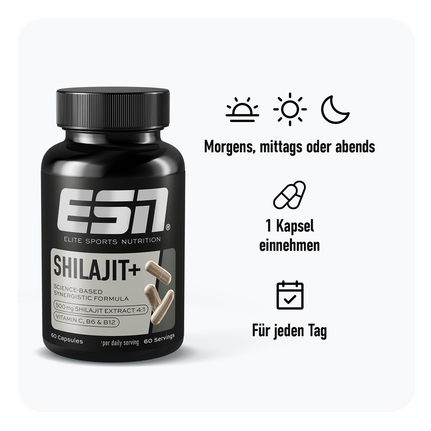 Das Herz der Formulierung bilden 2000 mg Shilajit aus Extrakt. Allein dieser Pflanzenmineral-Komplex ist schon einzigartig – doch durch die Kombi mit den ausgewählten Mikronährstoffen wird er zusätzlich ideal abgerundet: Denn Vitamin B6, B12 und C liefern dir einen Vitamin-Support für mehr Energie, mehr Fokus und weniger Müdigkeit.1 Zusätzlich liefern sie dir eine gezielte Unterstützung für dein Nervensystem und dein Immunsystem.1