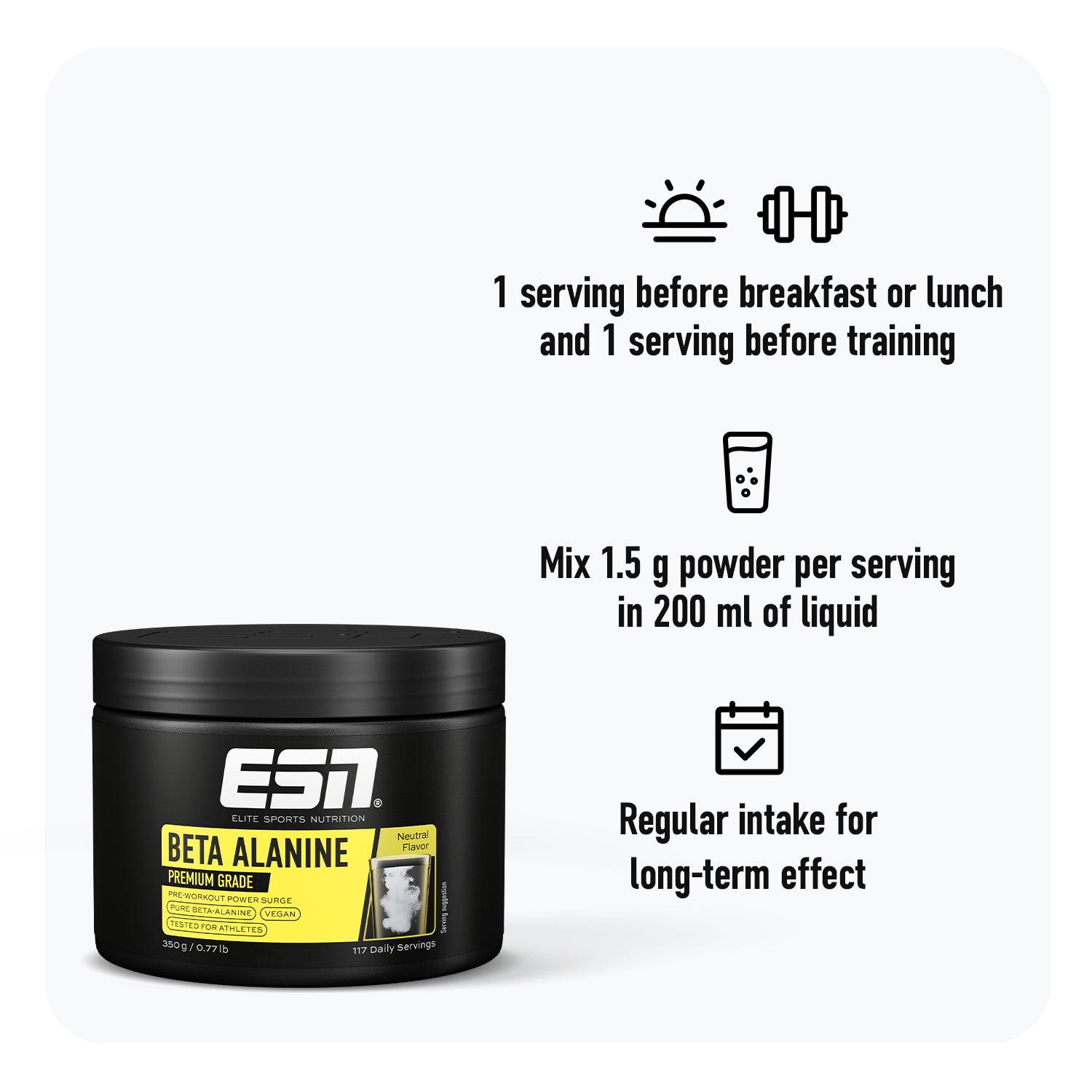 Unstoppable muscle power: Our Beta Alanine Powder supports you by increasing carnosine levels, delaying muscle acidity, and reducing fatigue. For longer training sessions with maximum power, more reps, and a tingling kick that takes your workout experience to the next level.