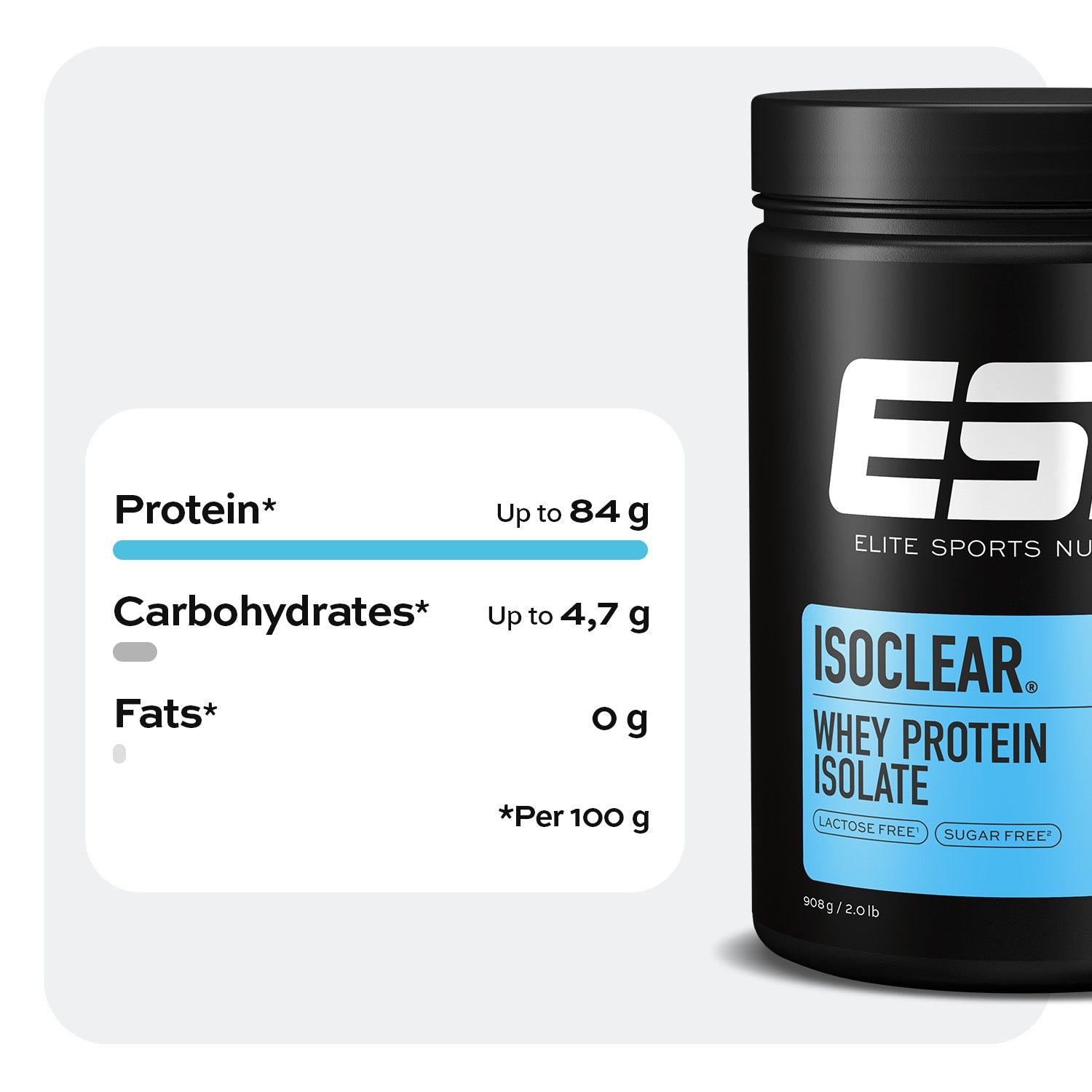 Fresh, clear and full of proteins: Isoclear. Our refreshing protein drink without sugar, fat or lactose! So it's perfect for quickly supplying your muscles with protein, meeting your protein requirements or adding variety to your protein game. Have you seen it yet? Our Isoclear is now also available in less sweet flavours.