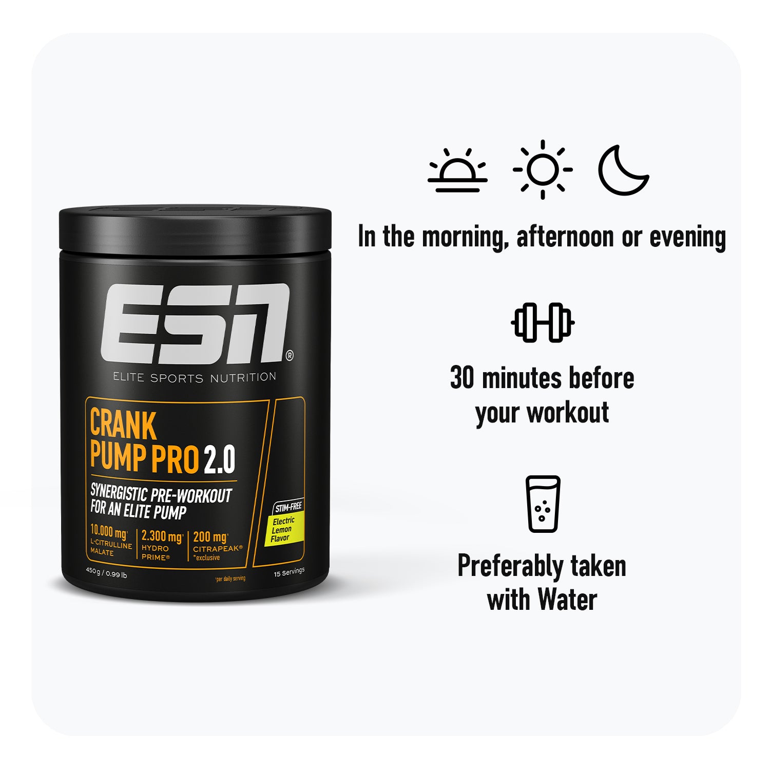 La nouvelle référence en technologie de pompe : Crank Pump Pro 2.0 dépasse le standard que nous avions établi avec la version 1.0. C’est le premier pré-entraînement en Europe à contenir CitraPeak®, associé à d’autres ingrédients innovants pour une congestion musculaire de niveau élite — totalement sans stimulants. Ce n’est pas seulement une amélioration ; c’est une toute nouvelle formulation qui offre un coup de boost comme vous n’en avez jamais vécu auparavant.