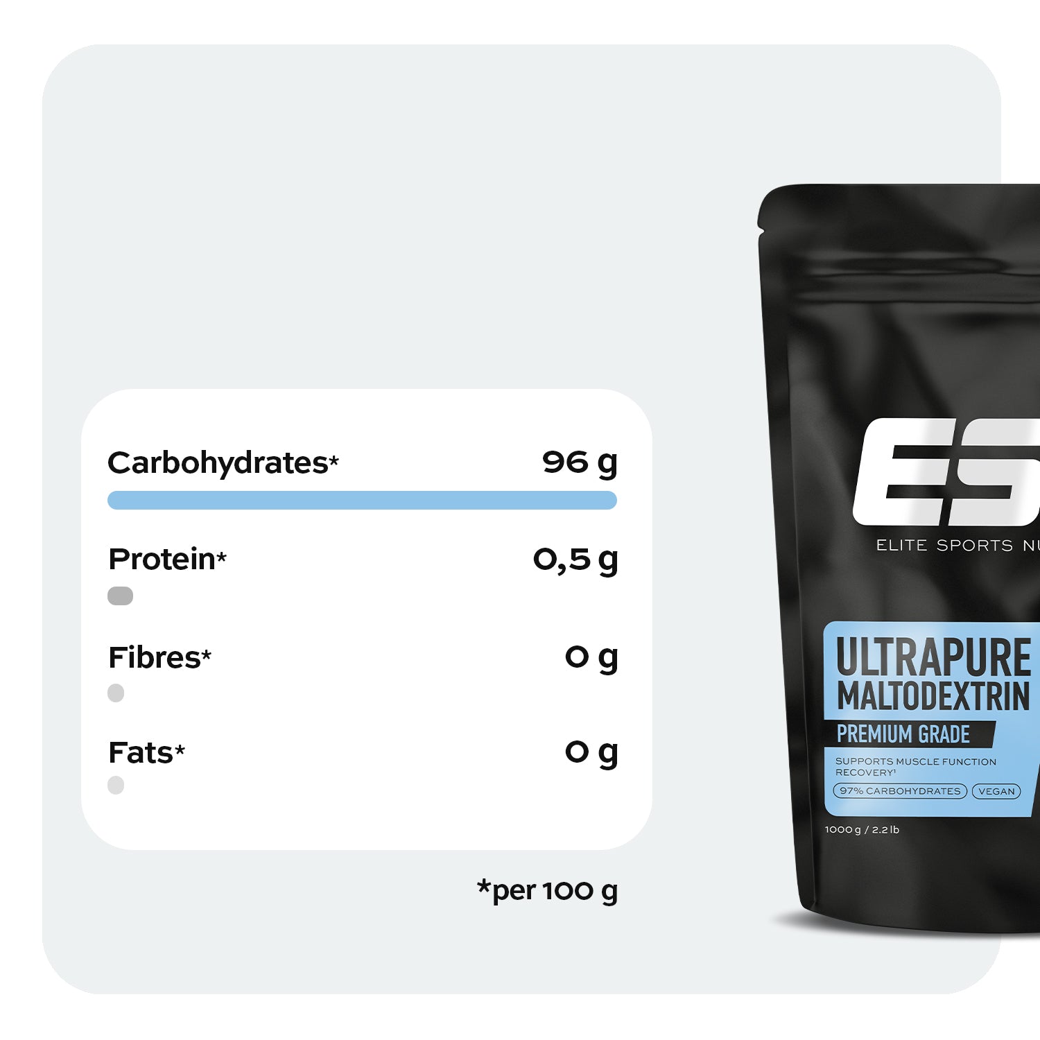 Ultra énergie, ultra performance – avec notre maltodextrine ultrapure.Elle vous fournit une énergie rapide, chaque fois que vous en avez besoin : en pré-entraînement, elle offre une puissance maximale, pendant l'entraînement, elle maintient votre niveau d'énergie, et après l'entraînement, elle recharge vos réserves de glycogène pour une récupération optimale de la fonction musculaire.1