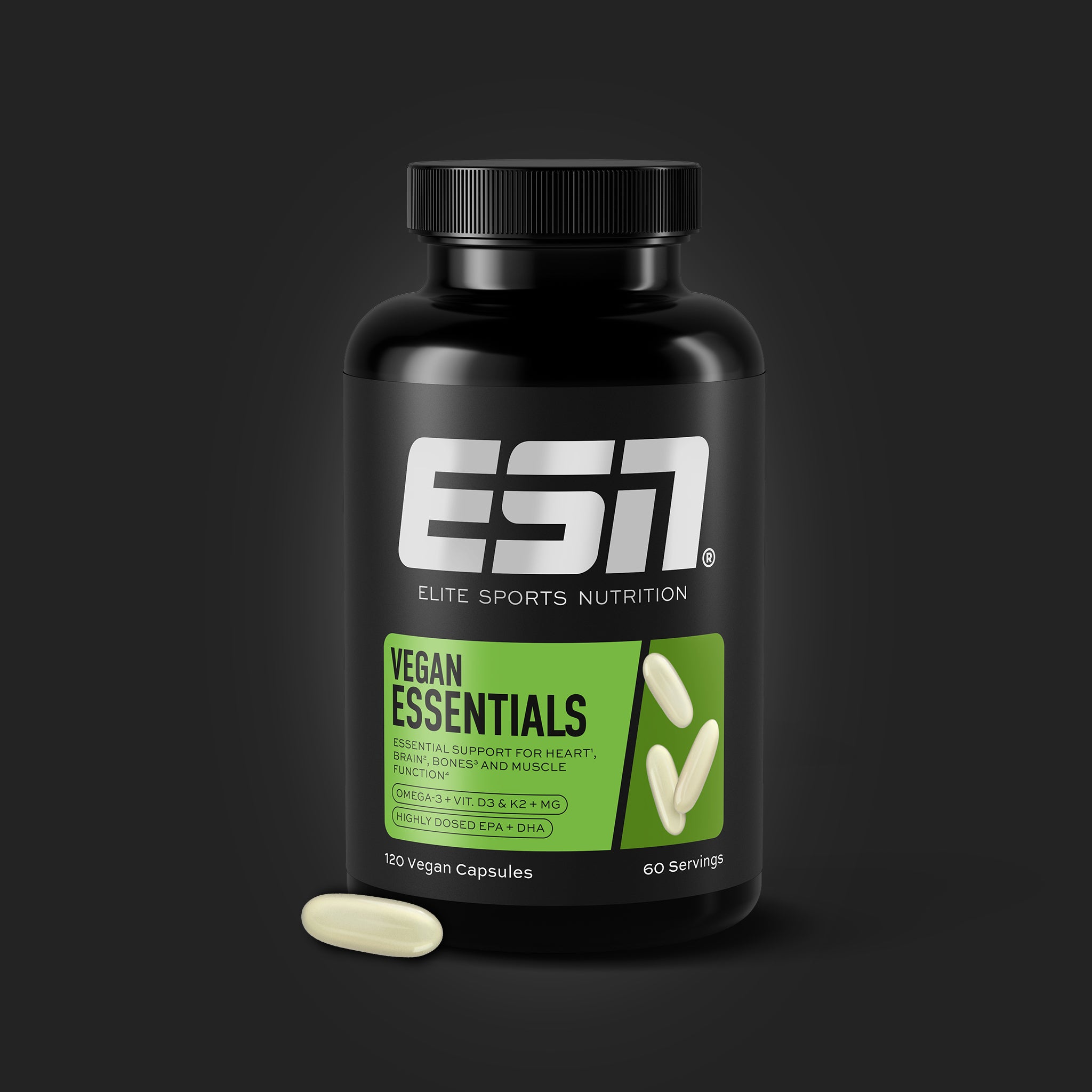 Get vegan essential support : dans nos Vegan Essentials, nous combinons les quatre nutriments essentiels que sont les oméga-3 issus d'huile d'algues, la vitamine D3, la vitamine K2 et le magnésium en un seul produit, afin que tu puisses soutenir simultanément ton cœur, ton cerveau, tes muscles et tes os.1,2,3,4 Cette combinaison de nutriments végétaliens 4 en 1 est le support parfait pour tous ceux qui souhaitent apporter à leur corps un soin optimal et poser les bases de leur santé pour une performance et une récupération maximales.